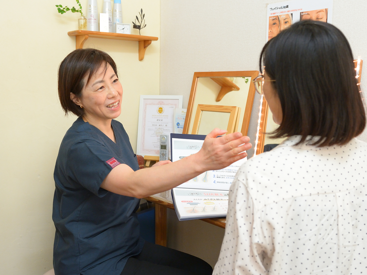 お客様が、安心してお話ができるプライベート空間で、ご記入いただいたカルテを参考にしながら、お客さまのお話にじっくりと耳を傾け、丁寧にヒアリングいたします。